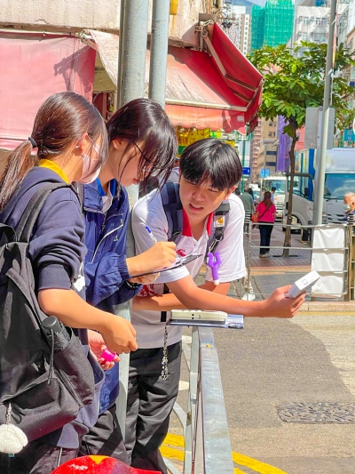 考察當天早上,同學們首先抵達荃灣可觀自然教育中心,學習城市考察的技巧、步驟及注意事項,為隨後的實地考察做好充分準備。在專業老師的指導下,學生們掌握了如何使用各種儀器來測量和記錄城市環境的數據,包括住宅類型、樓宇質素、音量分貝及懸浮粒子量等。隨後,他們便前往荃灣市中心進行實地考察。