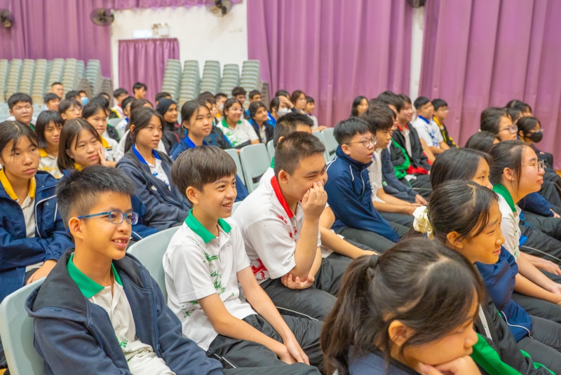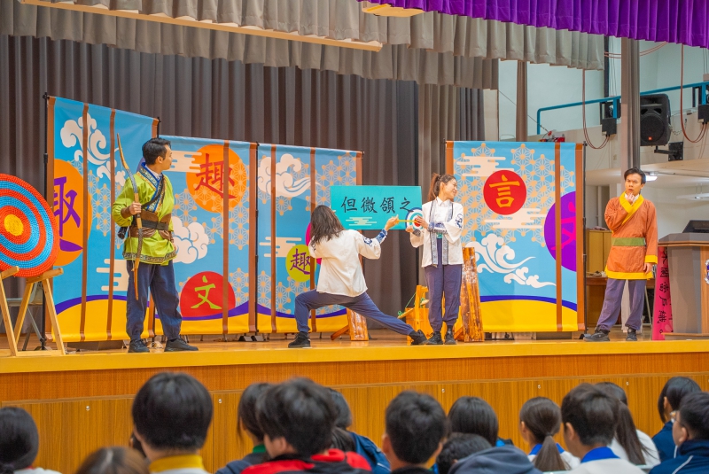 中文科活動-「賽馬會『趣看文言』戲劇教育計劃」到校巡迴演出本校中文科參與了由7A班戲劇組主辦的「賽馬會『趣看文言』戲劇教育計劃」,該戲劇組於10月14日到校為中二、中三級學生呈獻了一場別開生面的文言文戲劇演出。是次演出改編自兩篇文言經典——《賣油翁》與《木蘭辭》。演員以說書人身份靈活轉換角色與敘事角度,透過戲劇形式深入淺出地解說文言字句與閱讀技巧,同時傳遞作品的弦外之音,讓學生感受文言篇章中蘊藏的中華文化精髓。