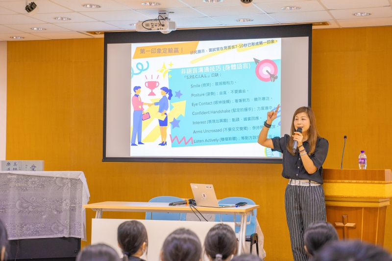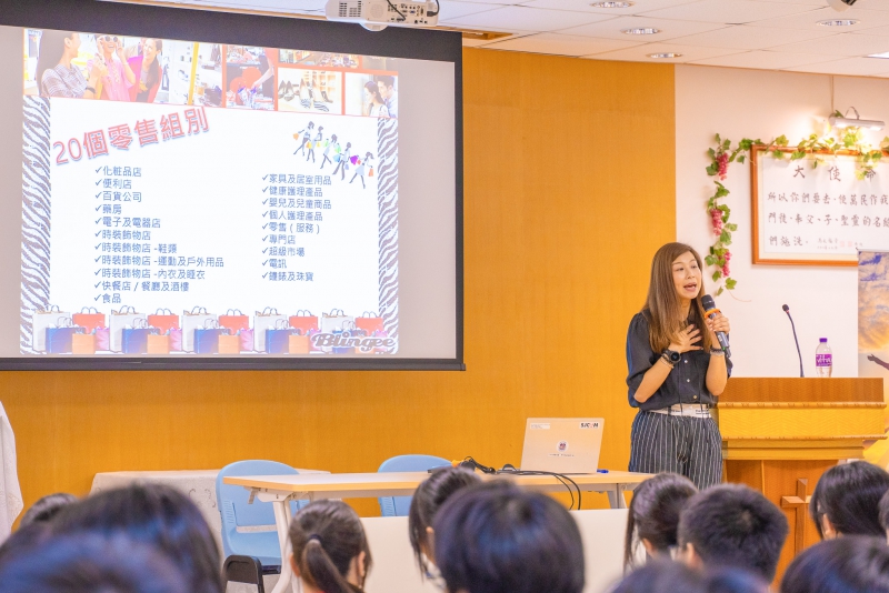 為加深中四級學生對行業實況的認識和了解,本校升學及就業輔導組於十月十四日邀請了太子鐘錶珠寶人力資源經理葉美玲小姐到校舉行講座,主題為「認識零售業」。講者介紹了零售業不同崗位的性質及工作內容、入行要求及前景等,加深了學生對行業的認識。更分享了應徵工作時的面試心得,提升學生的面試技巧。