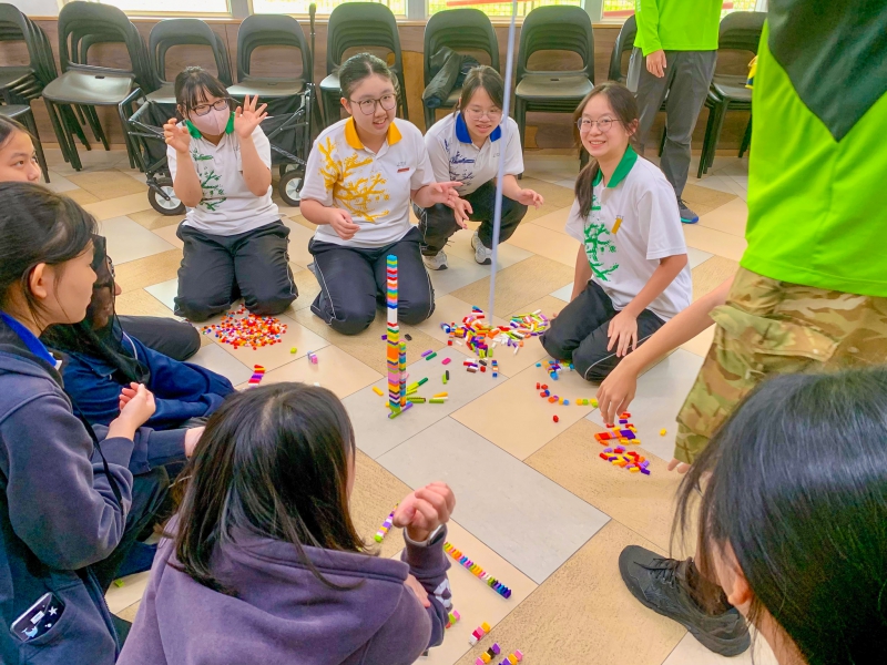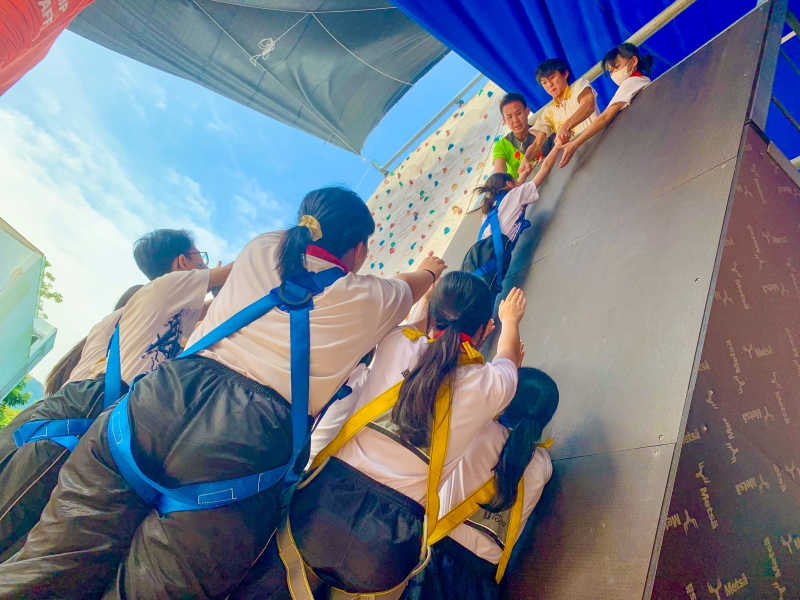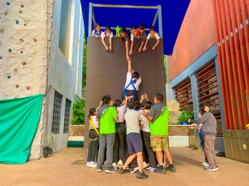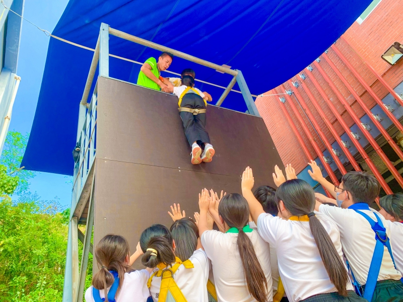 是次活動設計充滿挑戰與趣味。在「極速建塔」環節中,同學們在20秒內展現驚人默契,合力築起積木高塔;隨後「高牆挑戰」更考驗團隊信任與協作,全體學員在不借助器材下,互助扶持,成功登上兩層樓高的高台,場面振奮人心。