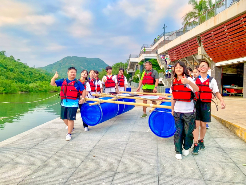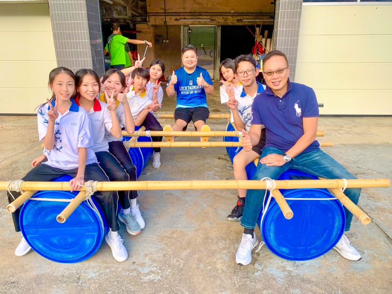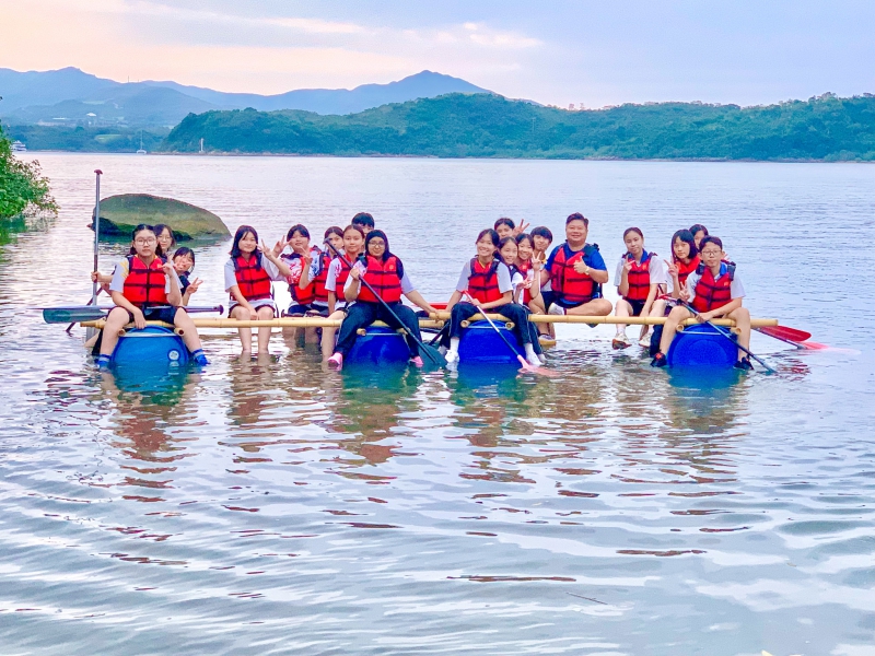 壓軸的「木筏建造與競賽」將活動氣氛推向高潮。各小組發揮創意與動手能力,紮製木筏,並在碧波上進行友誼賽,水花與笑聲交織,充分展現了同學們的活力與團隊智慧。