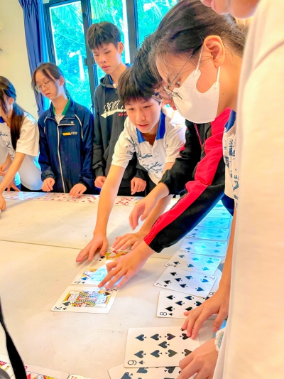 此綜合單元融合「傳呼拉圈接力」、「撲克牌排序」及「限時搜尋」等挑戰,全面考驗團隊的協調性、解難能力與創新思維。學生們在活動中手牽手克服障礙、透過合理分工完成複雜任務,並在實作中統整資源,深刻領悟到靈活應變與集體智慧的重要性,實踐「方法總比困難多」的積極態度。