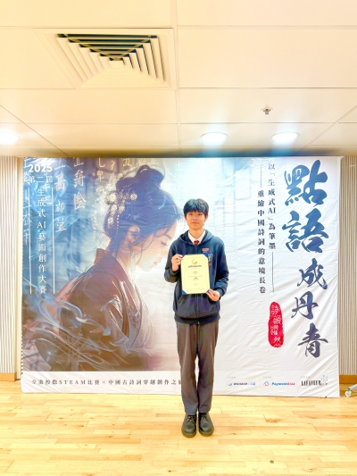 生成式AI藝術創作大賽《點語成丹青》–「詩韻躍然」以中國詩詞為核心,旨在引領學生深入探索千年文化傳承。同學透過人工智能(AI)工具重塑詩詞意境,將文字轉化為圖像,讓古老文脈在數位時代綻放新生。