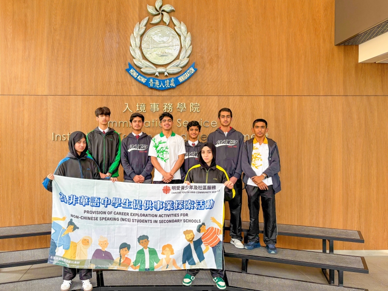 為使非華語學生了解更多就業資訊,本校生涯規劃組特此與「明愛青少年及社區服務」合作,於11/2/2026安排學生參觀入境事務學院。