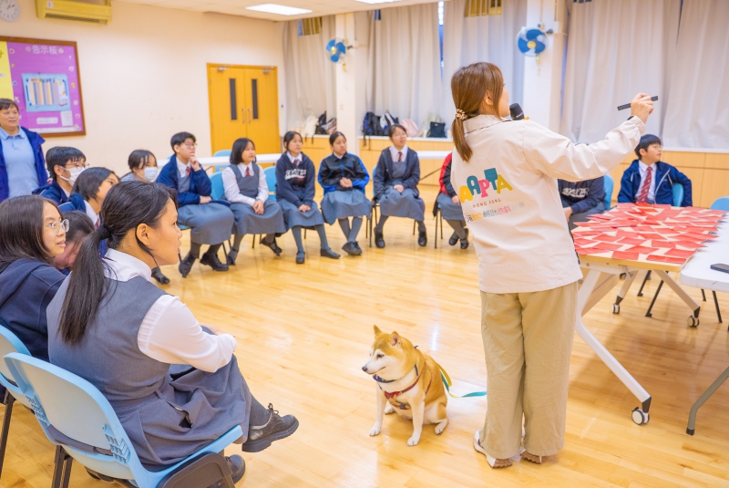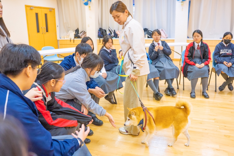工作坊開始時,導師先向同學介紹小動物的基本情感表達,講解牠們如何透過身體語言反映情緒狀態。隨後,活動進入最受歡迎的「動物全接觸」環節。同學們在導師指導下,以小組形式近距離觀察小狗的行為,並學習正確的動物安撫技巧,包括溫柔地撫摸及梳理毛髮。部分同學更嘗試帶領小狗在場內散步。最後在「放鬆與減壓」環節,同學們在「伴心動物大使」陪同下靜心放鬆,將負面情緒拋開。