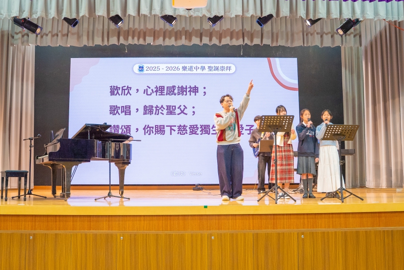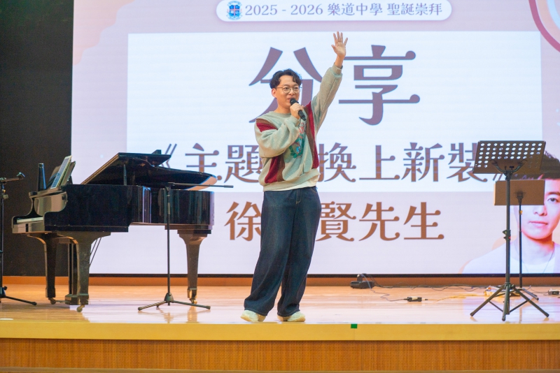 聖誕感恩崇拜(2025-2026)普天頌讚,救主降臨!聖誕節是基督耶穌降生的日子,樂道中學特此於22/12/2025舉行聖誕感恩崇拜,讓一眾師生向主獻上感恩和讚美。崇拜當日在宣召、禱告、致歡迎辭和讀經之後,隨即由分享嘉賓徐偉賢弟兄擔任講者,分享生命見證,並獻唱詩歌。