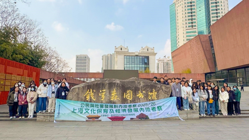 中五級「上海文化保育及經濟發展」內地考察四天團本校為配合公民與社會發展科的課程要求,已於二零二六年一月六至九日,安排中五全體同學,參加由教育局主辦的「上海文化保育及經濟發展」內地考察四天團。考察地點為上海。